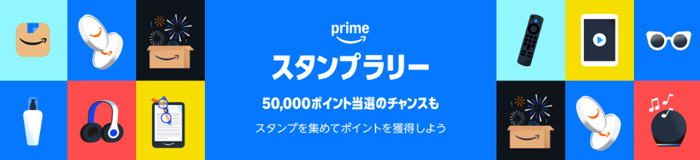 Prime Dayの「プライムスタンプラリー」(9/27~10/10)は、5つのミッションをクリアすると最大50,000ポイントの抽選に参加可能。
