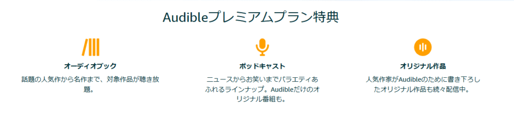 項目 | Audible | Amazon Music Unlimited | Kindle Unlimited |