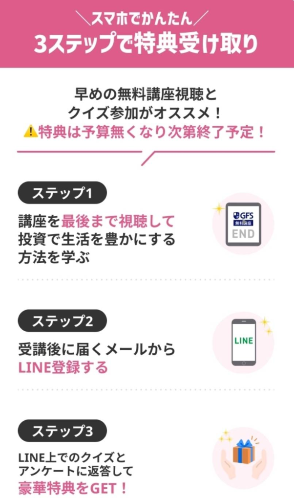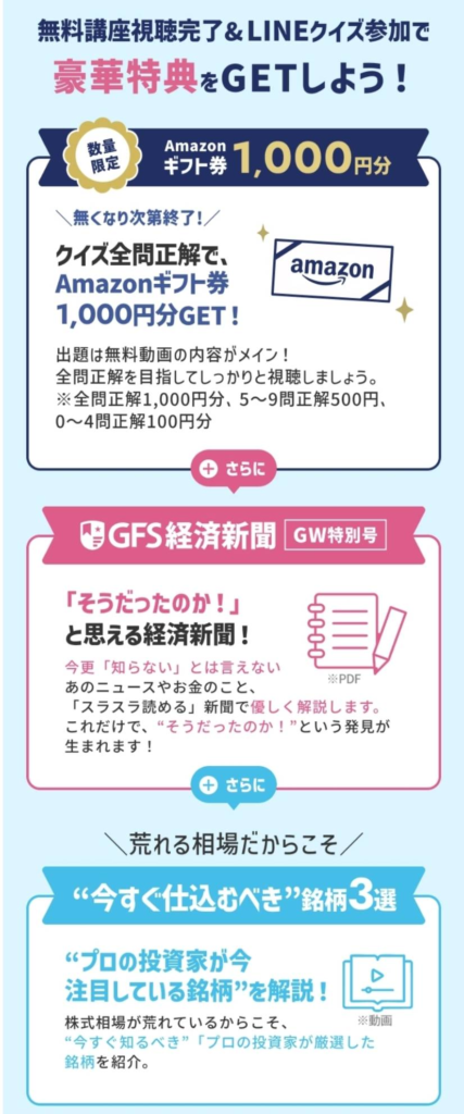 私がいつもおすすめしているGFS無料講座の特典が、今回もかなり豪華。