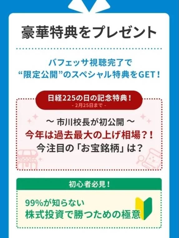 私がいつもおすすめしているバフェッサの特典が、今回もかなり豪華。