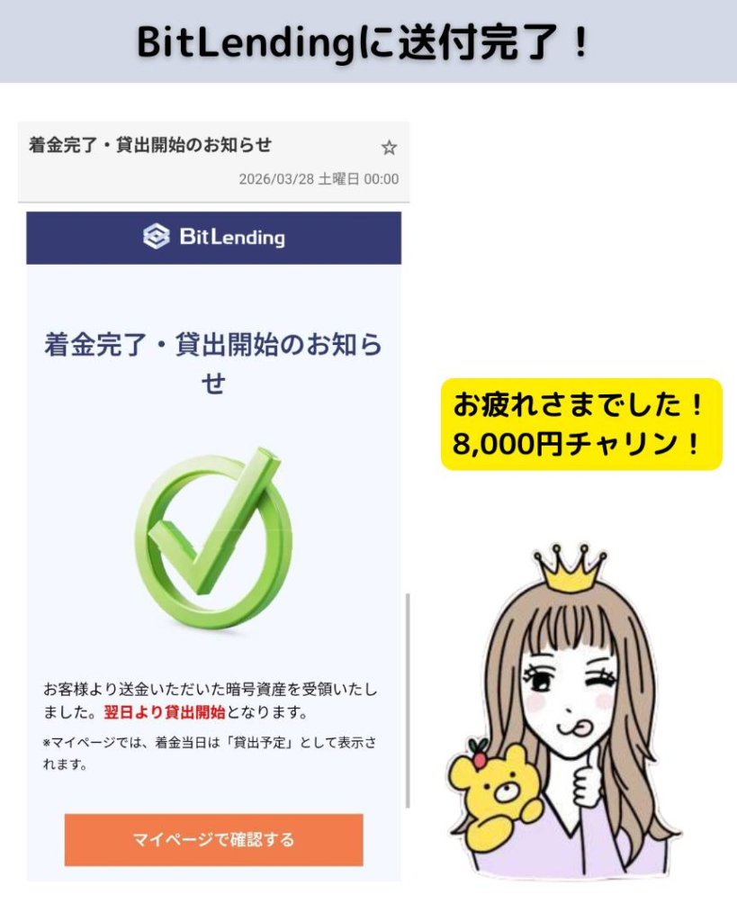 2. 期間内に暗号資産の「貸出完了」