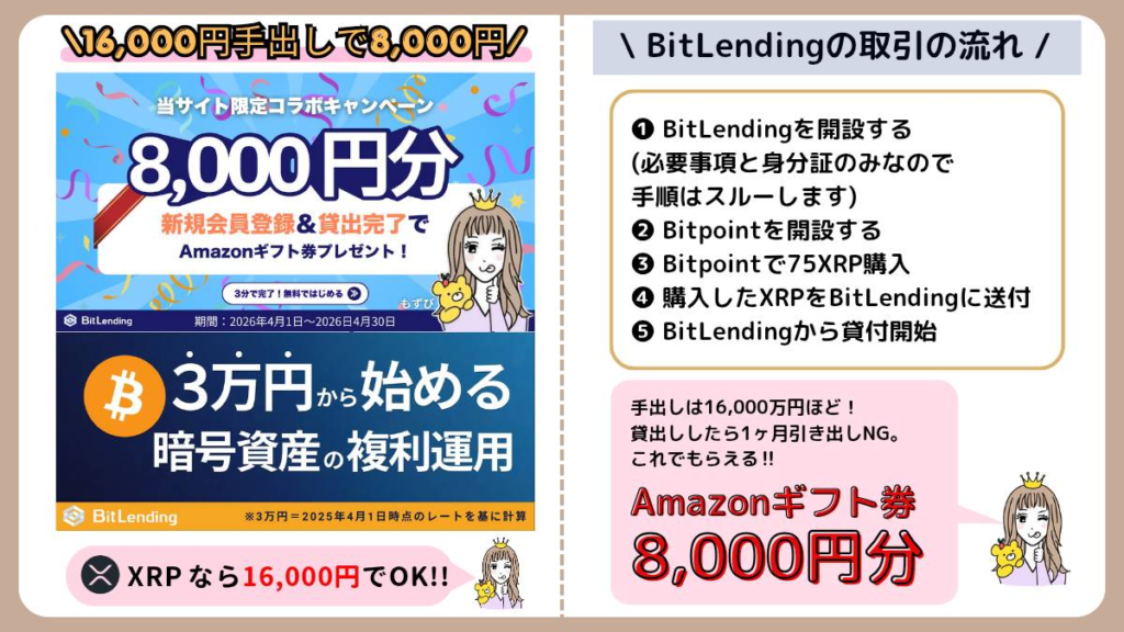 【4月限定】BitLending(ビットレンディング)でAmazonギフト券8,000円分もらえる!手出し最少のXRP送金手順も完全解説