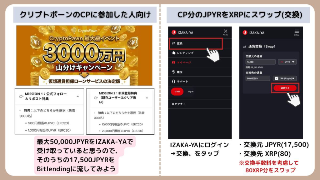 IZAKA-YAにある2万円分の「JPYR」をお持ちの方向けの、手出し0円で完結できるルートです。
