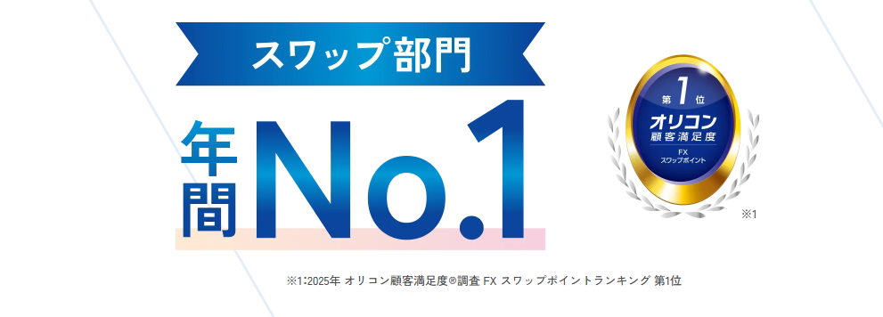 2025年オリコン顧客満足度調査の「FXスワップポイント部門」で第1位を獲得しているよ!