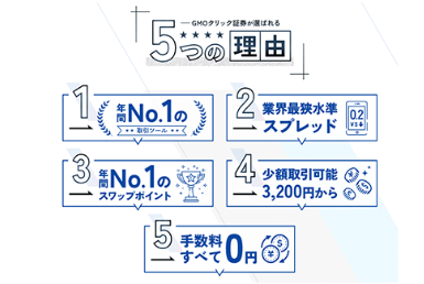GMOクリック証券はコストパフォーマンスが高く、ツールの使いやすさが売りの証券会社だよ!特にFX取引では、狭いスプレッドと高機能アプリが初心者からプロまで幅広く支持されているね。