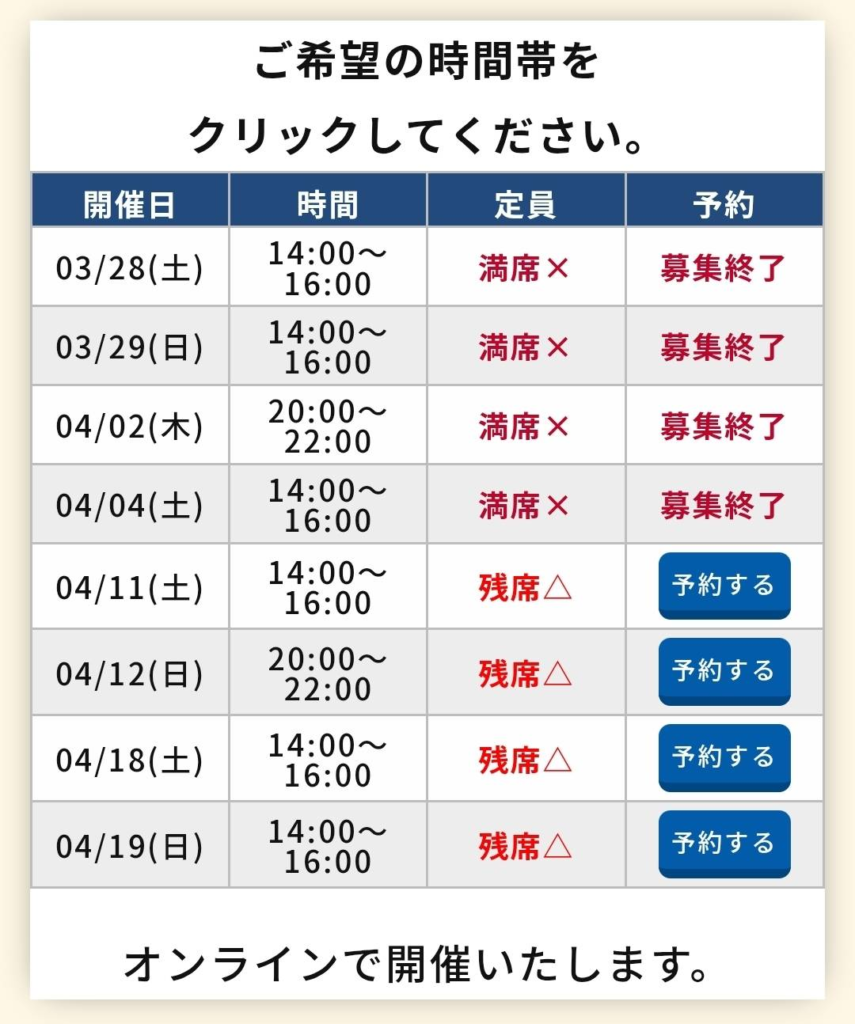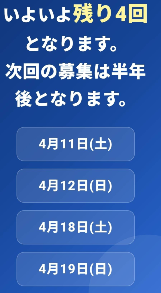 あと4回しかないらしい……しかも残席のこりわずか!!