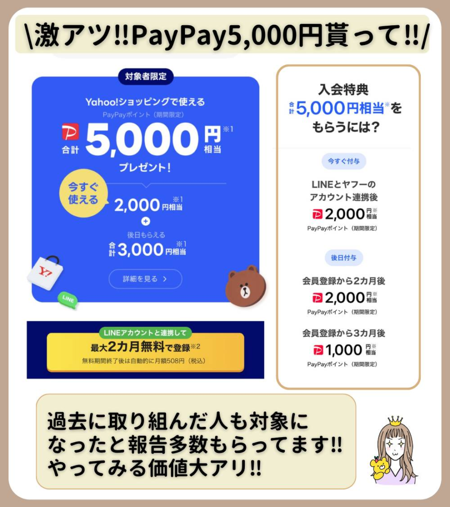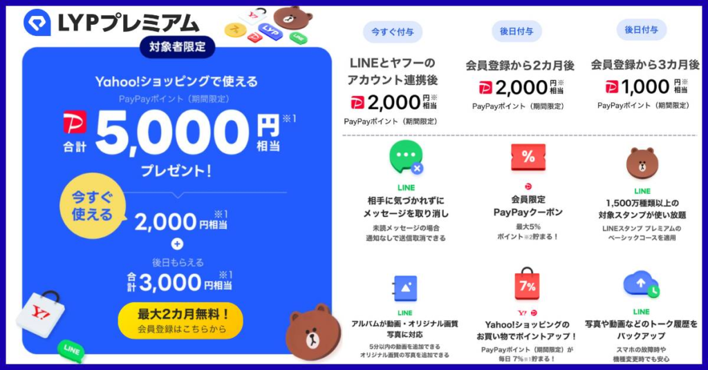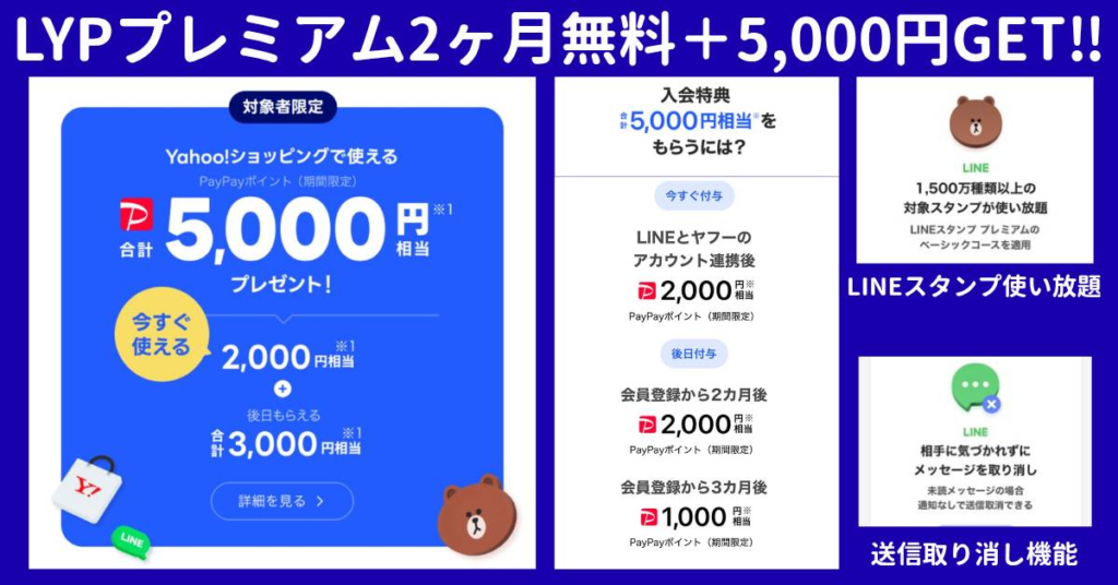 LYPプレミアム登録で最大5,000円相当もらえる✨