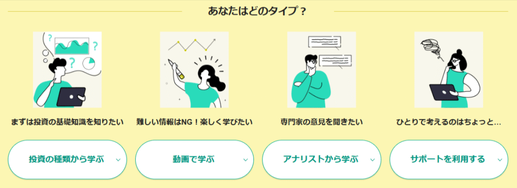 - 「チャットで不明点をすぐ解決できる。対応が親切で、ストレスなく投資できる。」(40代男性)
