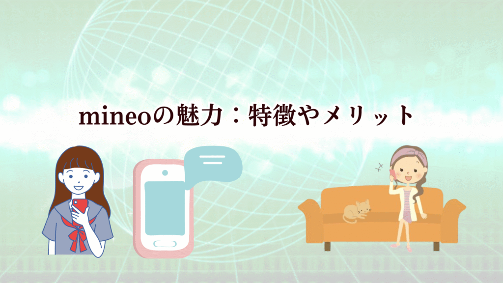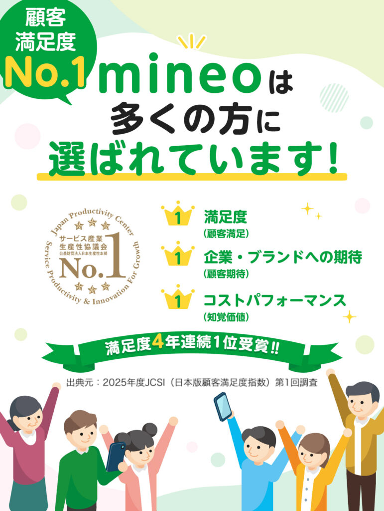 mineoは主にデータ通信の柔軟性とサポートの充実が強みで、2025年現在も顧客満足度調査で高い評価を得ているよ!