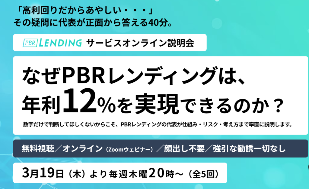 今話題のPBRレンディングって気になる…年利12%て本当?!
