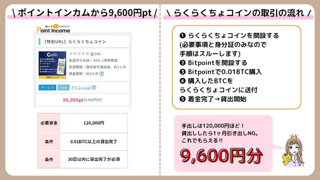 ポイントインカムから「らくらくちょコイン」というレンディング案件がでたので突撃しました!