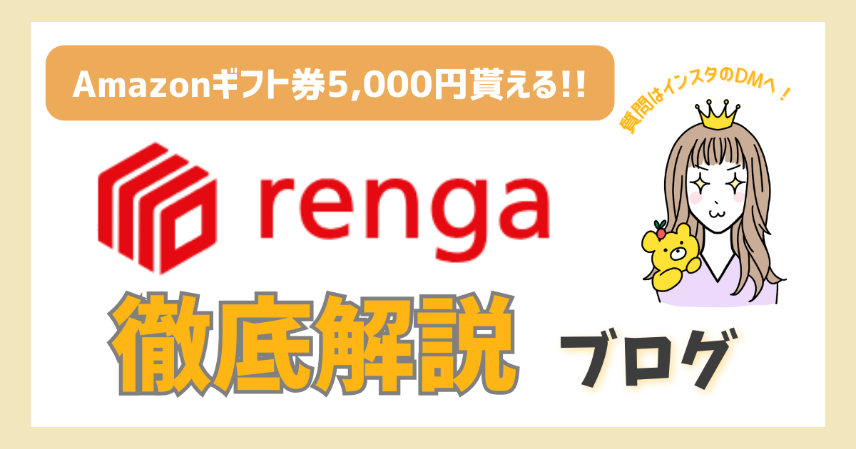 それならrengaがおすすめだよ!2025年3月13日より先着募集スタートのrengaの第2号ファンド(南青山・利回り4%・運用3年)に投資するだけで、口座開設1,000円+初投資4,000円=最大5,000円分のAmazonギフト券が手に入るキャンペーン情報を完全解説✨️10万円から始められる少額不動産投資の実態と注意点もあわせて紹介するね!