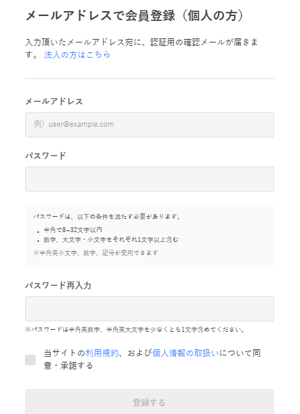 必要なもの:メールアドレス、本人確認書類(免許証など)